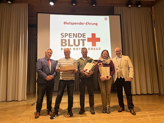 Für ihr 10‑maliges Blutspenden wurden Birgit Erhard, Marco Graßl, Damian Müller, Robert Ortlieb, Daniela Probst und Lisa Schmitt geehrt. Eine Würdigung für 25 Spenden erhielt Gerold Wiesler, während Harald Leimgruber für 50 Spenden geehrt wurde. Besonders großen Applaus und viel Anerkennung im Saal gab es für Kurt Gutmann, der bereits beeindruckende 100 Blutspenden geleistet hat.
