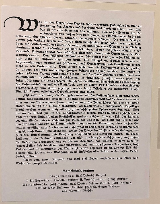 Tauchen Sie ein in ein Stück Ortsgeschichte und entdecken Sie, wie vor einem Jahrhundert der Grundstein für das heutige Rathaus gelegt wurde.