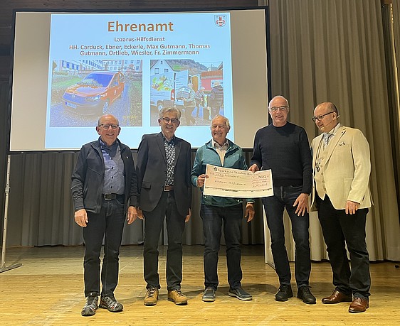 Für den Lazarus-Hilfsdienst wurden die Herren Hans-Georg Carduck, Bernhard Ebner, Wolfgang Eckerle, Max Gutmann, Thomas Gutmann, Manfred Ortlieb, Hans-Peter Wiesler und (als jüngstes Mitglied) Frau Ute Zimmermann ausgezeichnet. Die Gemeinde überreichte anstatt eines persönlichen Präsentes eine Spende an den Hilfsdienst selbst.
