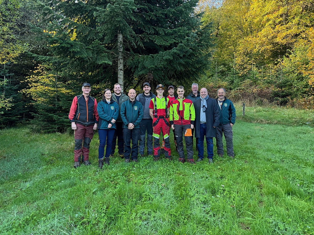 Zusammen mit Forstwirt Adrian Steiger werden sie, nach seiner Meisterprüfung Ende November, eine Azubirotte bilden und an verschiedenen Bereichen im Ober- und Untertal Einblick in alle Arbeitsbereiche, von Seilkranhieben über Pflanzungen bis hin zur Weginstandsetzung, bekommen.