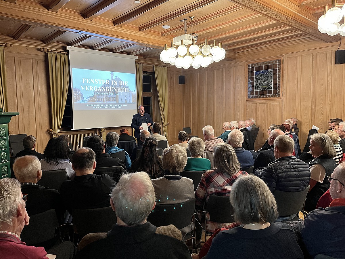 Am Freitagabend eröffnete Bürgermeister Patrick Weichert im Bürgersaal die Ausstellung Fenster in die Vergangenheit – Münstertal 1939-1945.